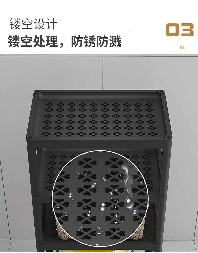 The 4 Layer Tool Free Assembly Multifunction Shelves With Roller is a Tool Free Assembly, 4-tier design and Extended High On Bottom Level, multifunctional, with smooth rollers, durable material, space-saving, easy assembly and convenient for managing your items; they also feature a strong load-bearing capacity and classified storage, provide ample storage space for kitchen, bathroom, living room, or office, make it easy to take and organize items conveniently, and are suitable for storing fruits, vegetables, toiletries, toys, books, and more. The slim design fits easily into corners or small spaces, is equipped with wheels for easy movement and repositioning, is made of sturdy and long-lasting material for daily use, and is simple to install without special tools.