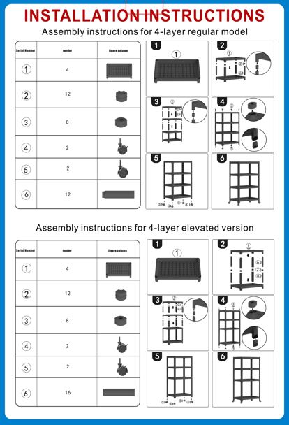 4 Layer Tool Free Assembly Multifunction Shelves With Roller Tool-free assembly