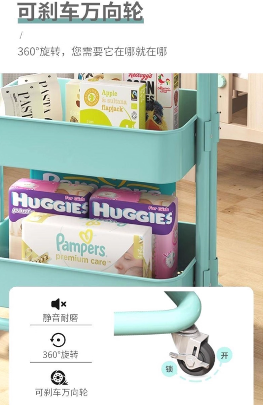 it also features Crafted from robust 19mm carbon steel for superior strength, stability, and long-lasting performance, Each tier supports substantial weight, making it ideal for professional, industrial, or commercial use, Deep mesh-design baskets feature a netted base for secure placement, improved ventilation, and reduced dust buildup, Equipped with 360° swivel casters for effortless mobility; two wheels feature lock mechanisms for stability when stationary, Easy-to-grip frame and optimal height for convenient loading and unloading in daily operations and Perfect for workshops, offices, salons, kitchens, medical facilities, or warehouse storage needs.