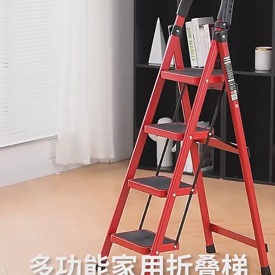 The 4 Step Foldable Ladder is 4-Step Design, Bolded, Sturdy and Durable, Foldable & Space-Saving, Non-Slip Steps, Lightweight & Portable and Multi-Purpose Use; it also features Provides safe and convenient access to higher shelves or cabinets, Made from high-quality materials for long-lasting stability, Easy to store when not in use, Ensures safety while climbing and Easy to carry around the house, Ideal for home, kitchen, garage, or office.